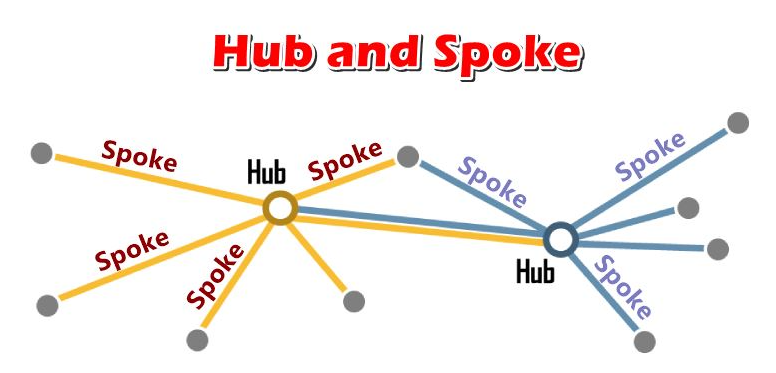 허브 앤 스포크는 물류 및 운송 분야에서 사용되는 용어로, 중앙 허브(hub)와 분산된 지점인 스포크(spoke)로 이루어진 네트워크 구조를 의미합니다. 이 구조는 효율적인 운송 및 유통을 위해 설계되었습니다.