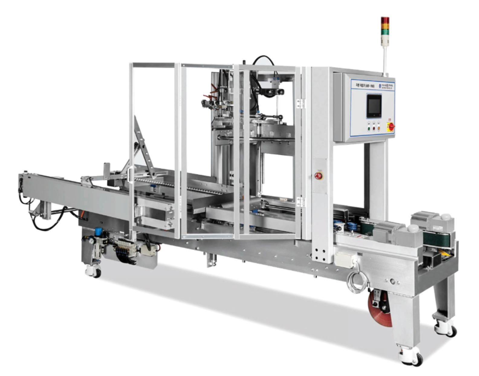 물류 제함기(Automatic Carton Erector)는 판지 상자를 자동으로 조립하는 기계입니다. 평평하게 접힌 판지 상자를 펴서 모양을 잡은 후, 하단을 접고 테이핑하거나 접착제로 고정하여 조립된 상자를 제공합니다. 이 장비는 물류, 유통, 제조업에서 제품을 상자에 포장하기 전에 상자를 빠르고 효율적으로 준비하기 위해 사용됩니다.
