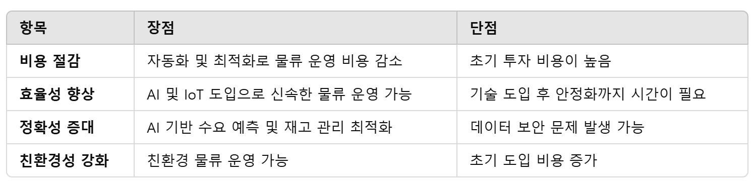 특히, 4차 산업혁명 기술이 물류 산업과 결합하면서, 과거에는 사람이 직접 수행했던 작업을 AI 및 IoT(사물인터넷)와 같은 첨단 기술이 대체하고 있으며, 이를 통해 운영 효율성을 높이고, 비용을 절감하는 것이 기업들의 주요 목표가 되고 있습니다.