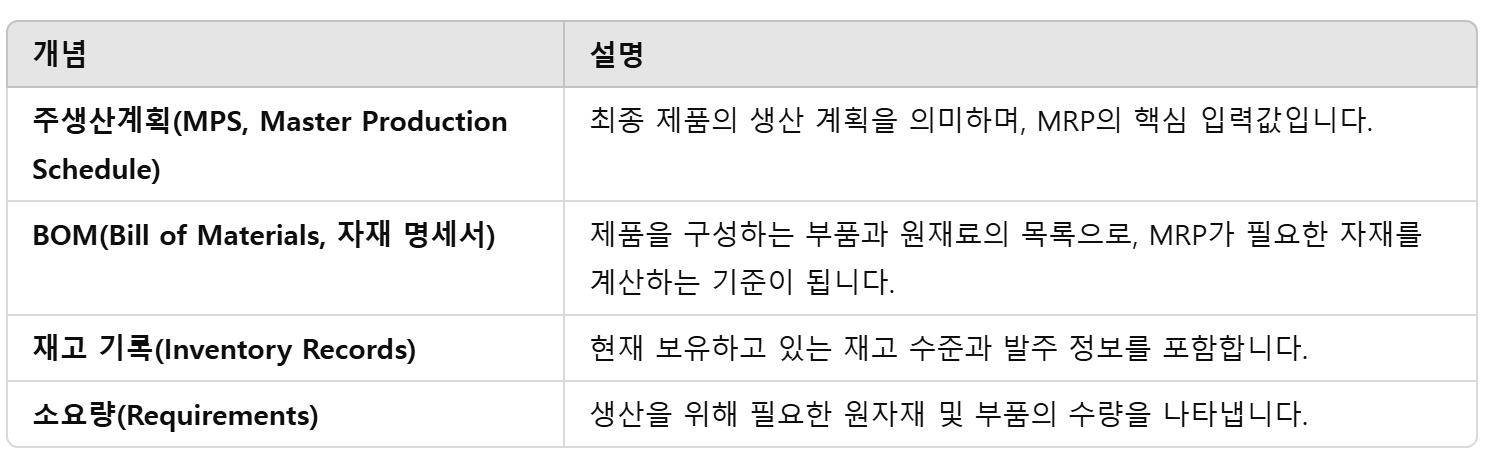 MRP는 다음 세 가지 주요 입력 데이터를 기반으로 작동합니다.